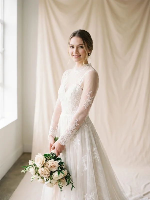 We use only premium bridal fabrics sourced from trusted mills — including French lace, Italian satin, silk organza, luxury tulle, crepe, and silk chiffon. Each fabric is selected for its drape, durability, and beauty.